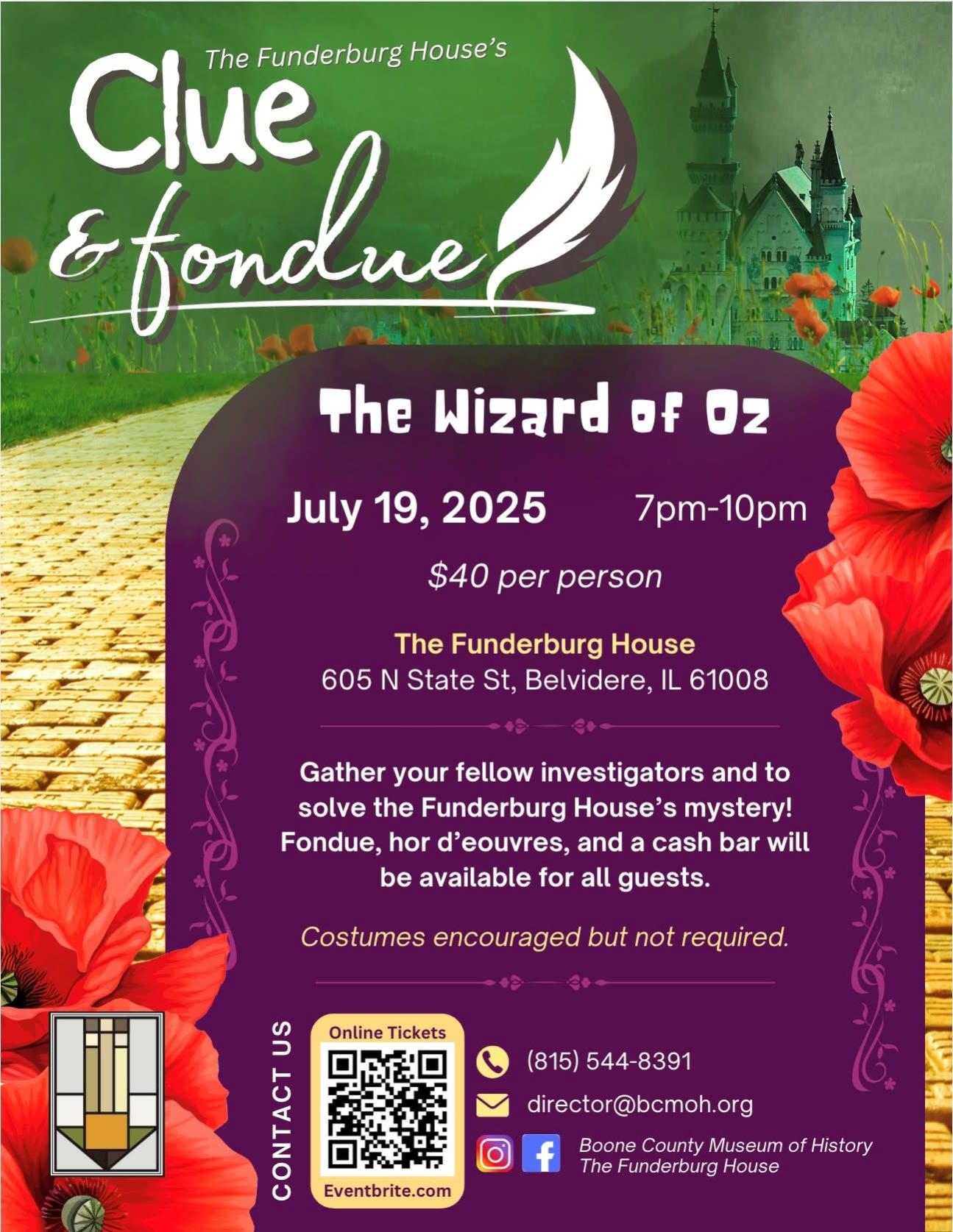 Solve the mystery at The Funderburg House! Gather your team and enjoy cheese and chocolate fondue and themed drinks while solving a Wizard of Oz themed mystery. Tickets cost $40 per person.