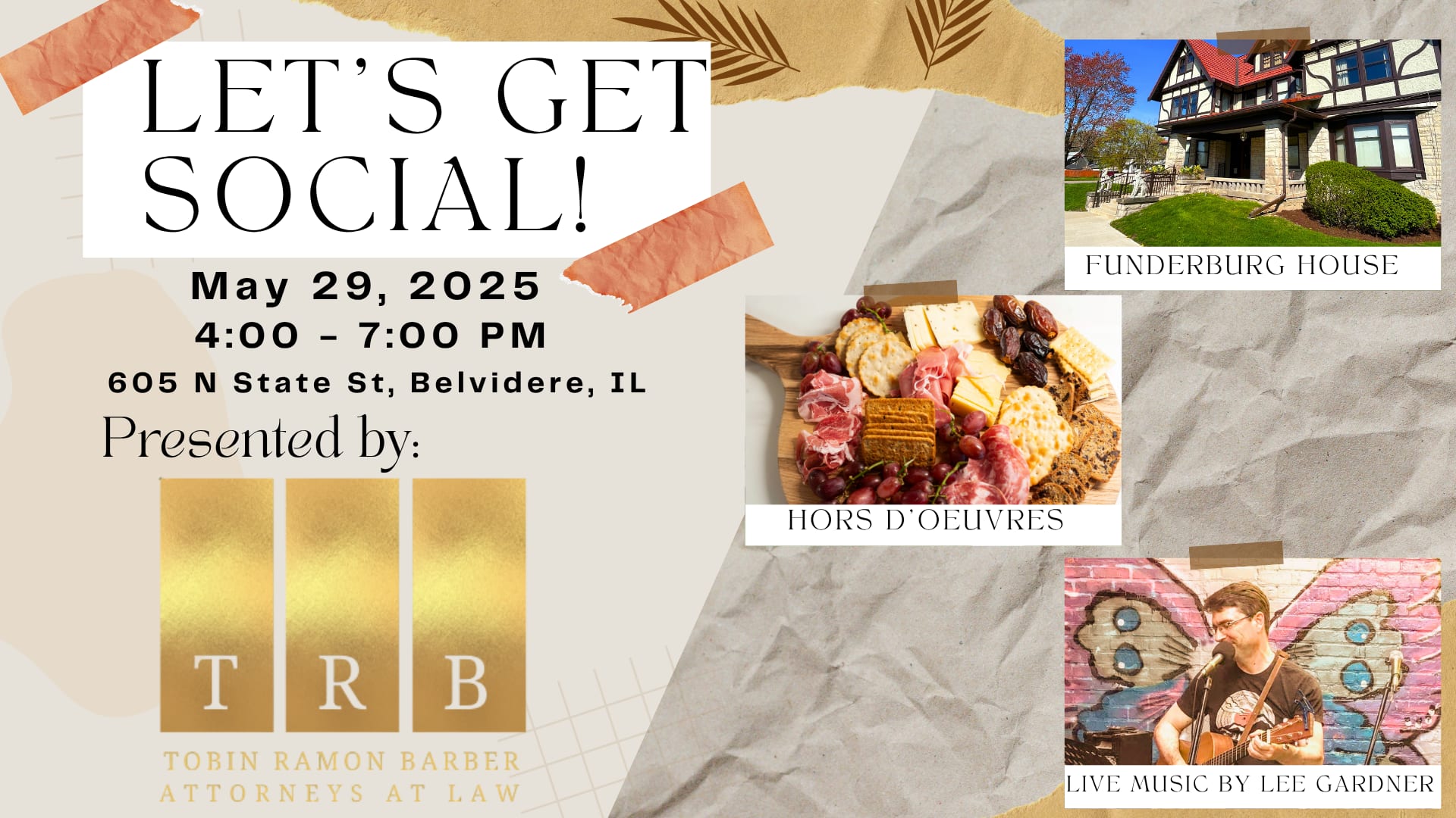 Let's Get Social! Please join us in the beautiful garden of the Funderburg House for networking, hors d’oeuvres, live music, and a cash bar. If the weather doesn't cooperate, we will be inside.