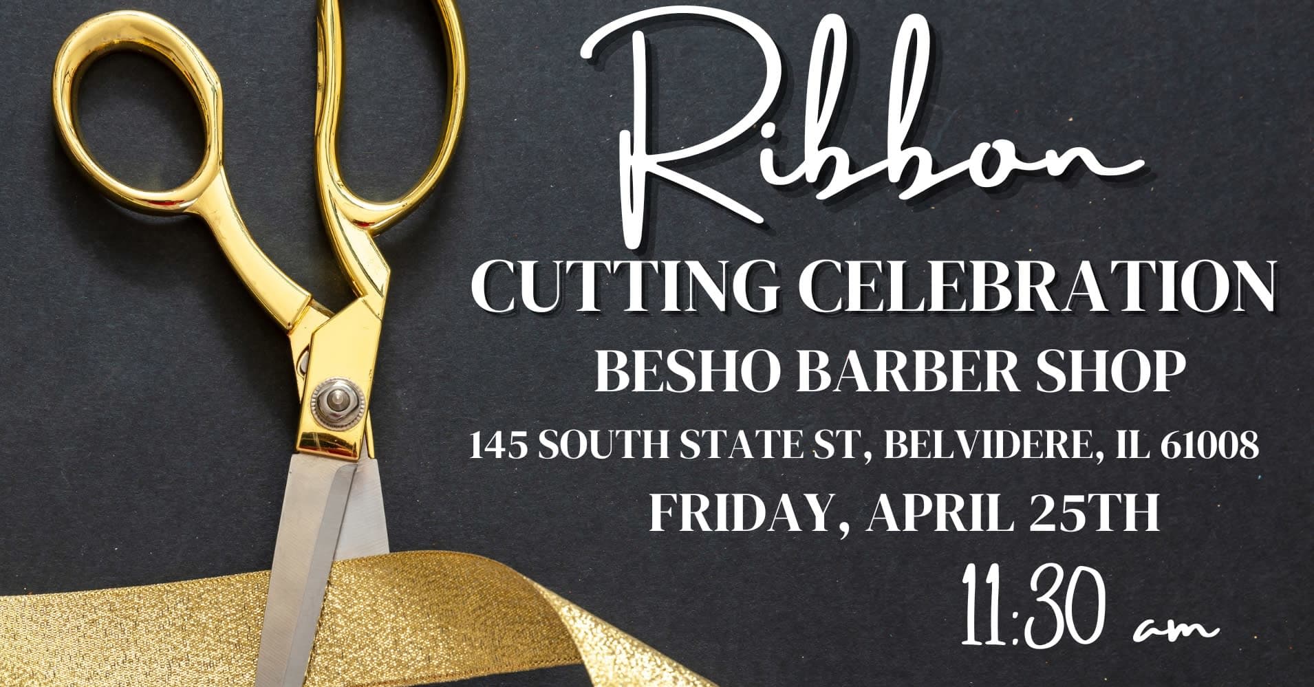 Join us for the ribbon cutting and grand opening for Besho Barber Studio. Let's come together to welcome them into the community and celebrate this exciting new addition!