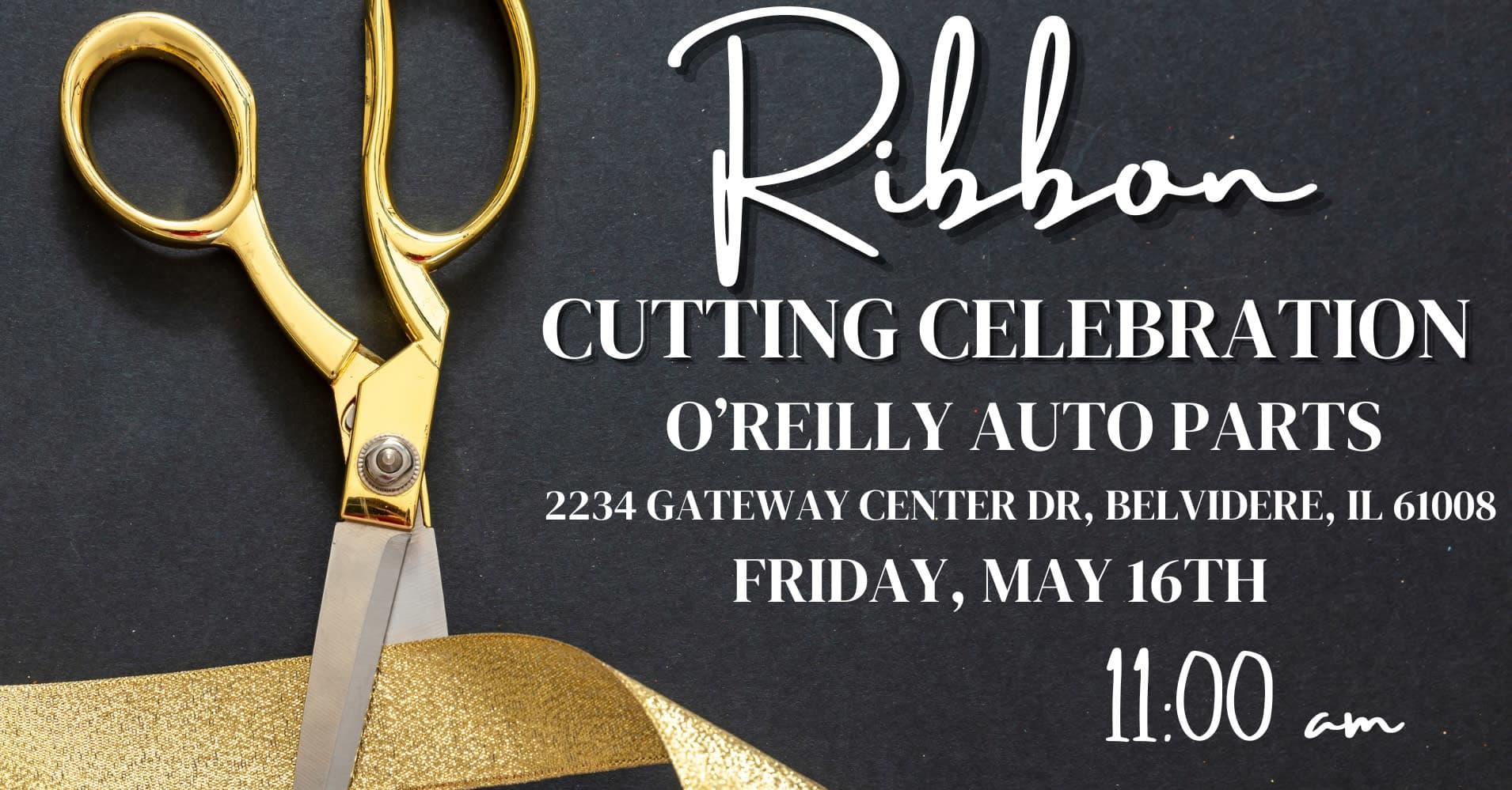 Join us for the ribbon-cutting and grand opening for O'Reilly Auto Parts. Let's come together to welcome them into the community and celebrate this exciting new addition!