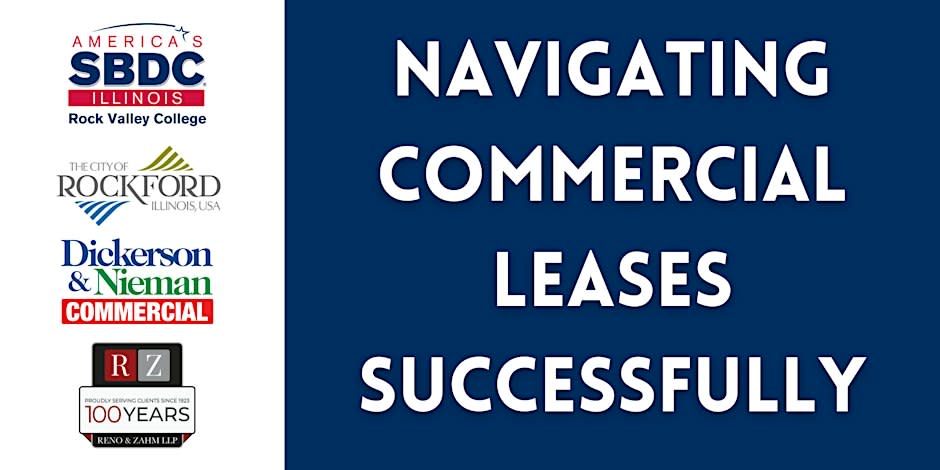 The Illinois Small Business Development Center (SBDC) at Rock Valley College is partnering with the City of Rockford, Dickerson & Nieman Realtors, and Reno & Zahm LLP to bring local business owners this informative workshop designed to address the recurrent challenges that business owners in Rockford face when signing commercial leases, such as leasing spaces not zoned for their intended use, leasing from unauthorized individuals, etc.